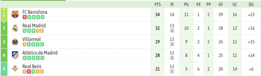 El Barcelona no lideraba LaLiga desde la jornada 7. Si el Real Madrid no vence al Girona, el conjunto culé cerrará el fin de semana en lo más alto de la clasificación.