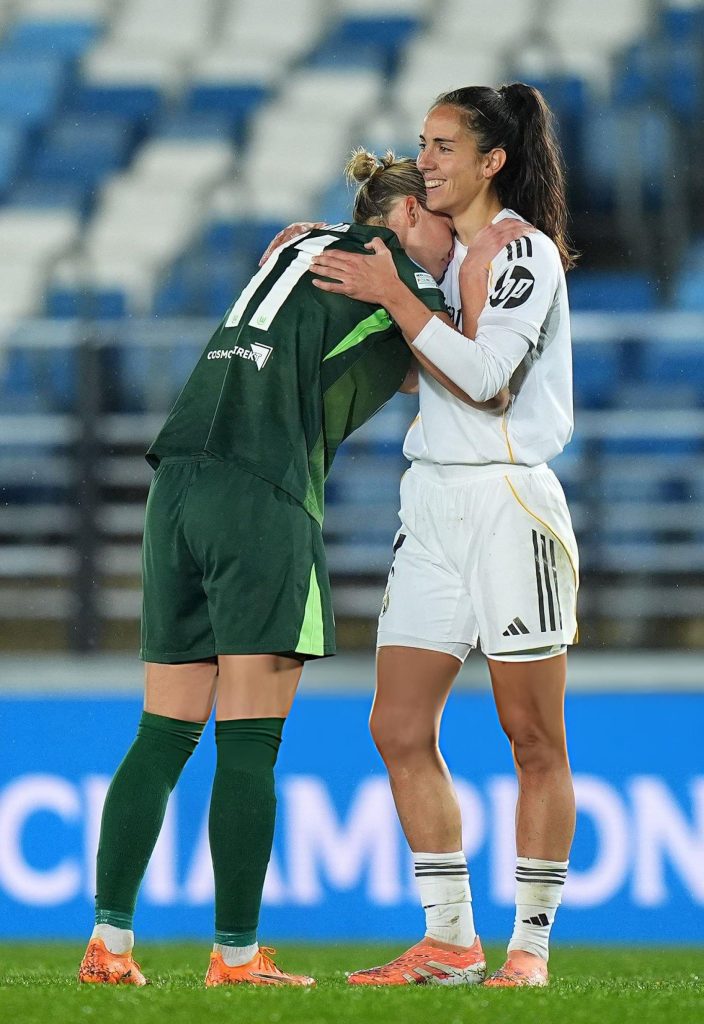 El Wolfsburgo entró mejor en el partido, imponiendo ritmo y presencia física, pero se topó con Misa Rodríguez, gigantesca para evitar el 0-1. Del posible golpe alemán surgió la respuesta madridista: un córner servido por Eva Navarro acabó en un remate improvisado y brillante de María Méndez, que adelantó a las blancas con la espalda en el 19’.
